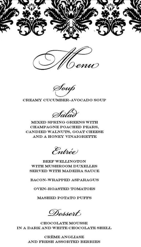 Black & White Ball / Formal Banquet Dinner Menu Dinner menu, Menu from www.pinterest.nz
