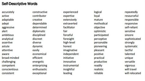 Self Descriptive Words For Resume - Use our list of adjectives and other words to describe yourself to enhance your resume, write a strong cover letter, or ace that job interview. One of the most tricky parts of writing a resume is using the right words to describe yourself. Behold, more than 125 words to describe yourself perfectly, whether you’re giving a quick intro, preparing to.